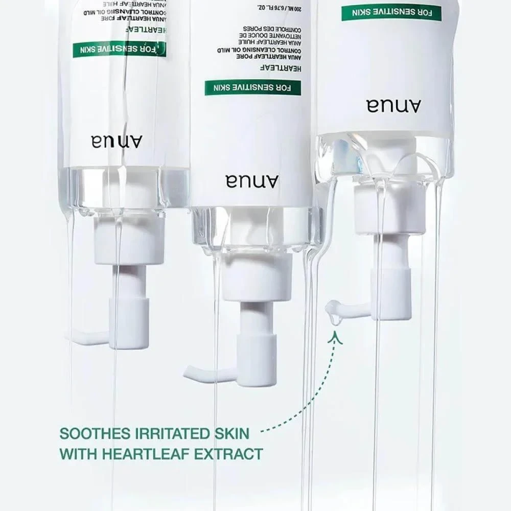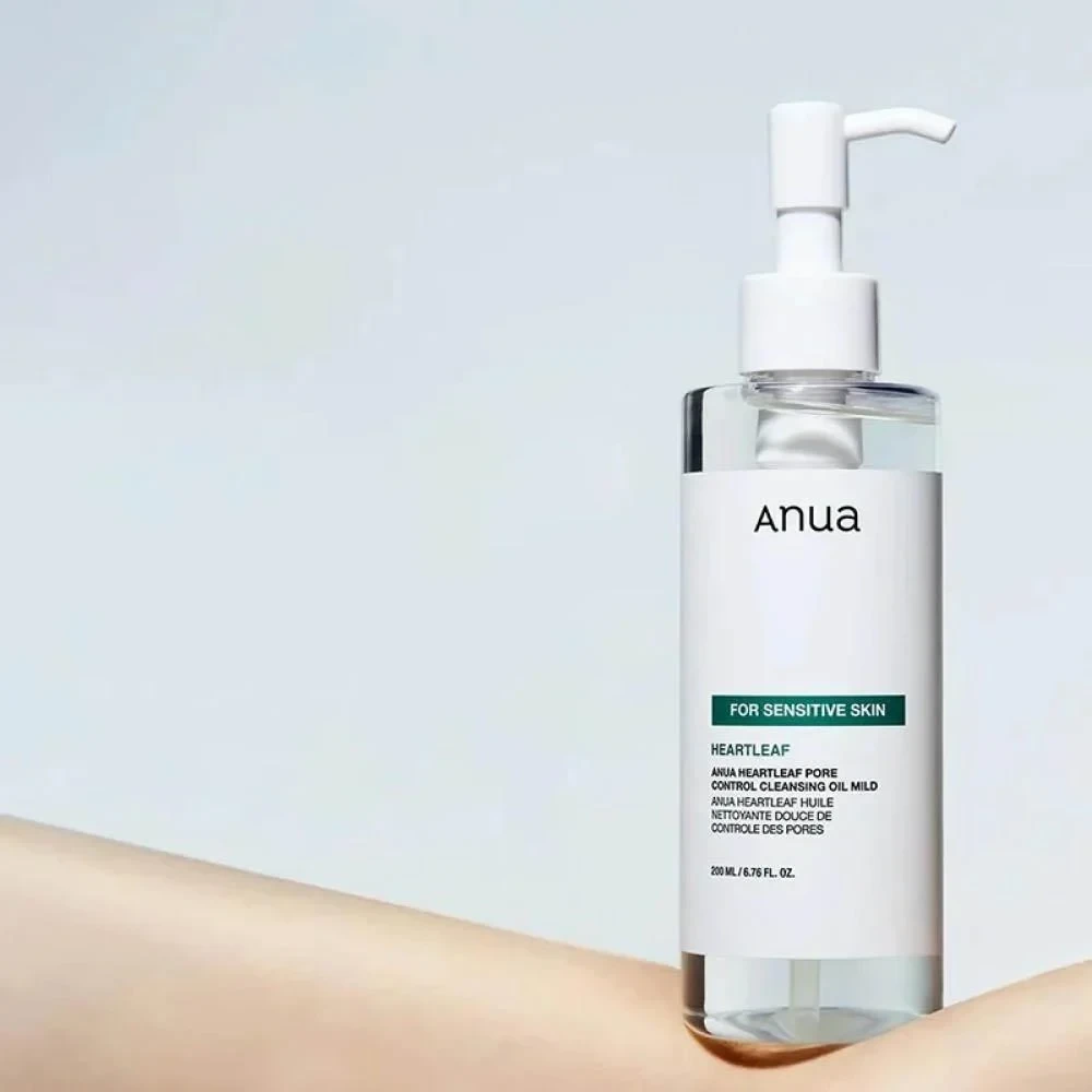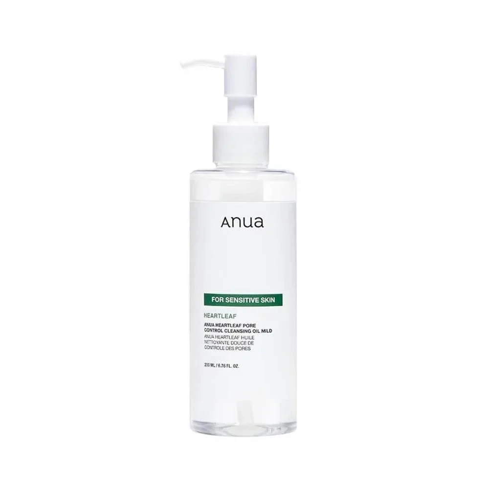 Anua Heartleaf Pore Control Cleansing Oil Mild is a gentle yet effective cleansing oil specially formulated for sensitive skin. Enriched with Heartleaf (Houttuynia Cordata) extract, known for its soothing and anti-inflammatory properties, this lightweight oil dissolves makeup, sunscreen, and impurities while helping to unclog pores and control excess sebum. Its mild, skin-friendly formula leaves the skin feeling refreshed, balanced, and hydrated without irritation or a greasy residue. Key Benefits: