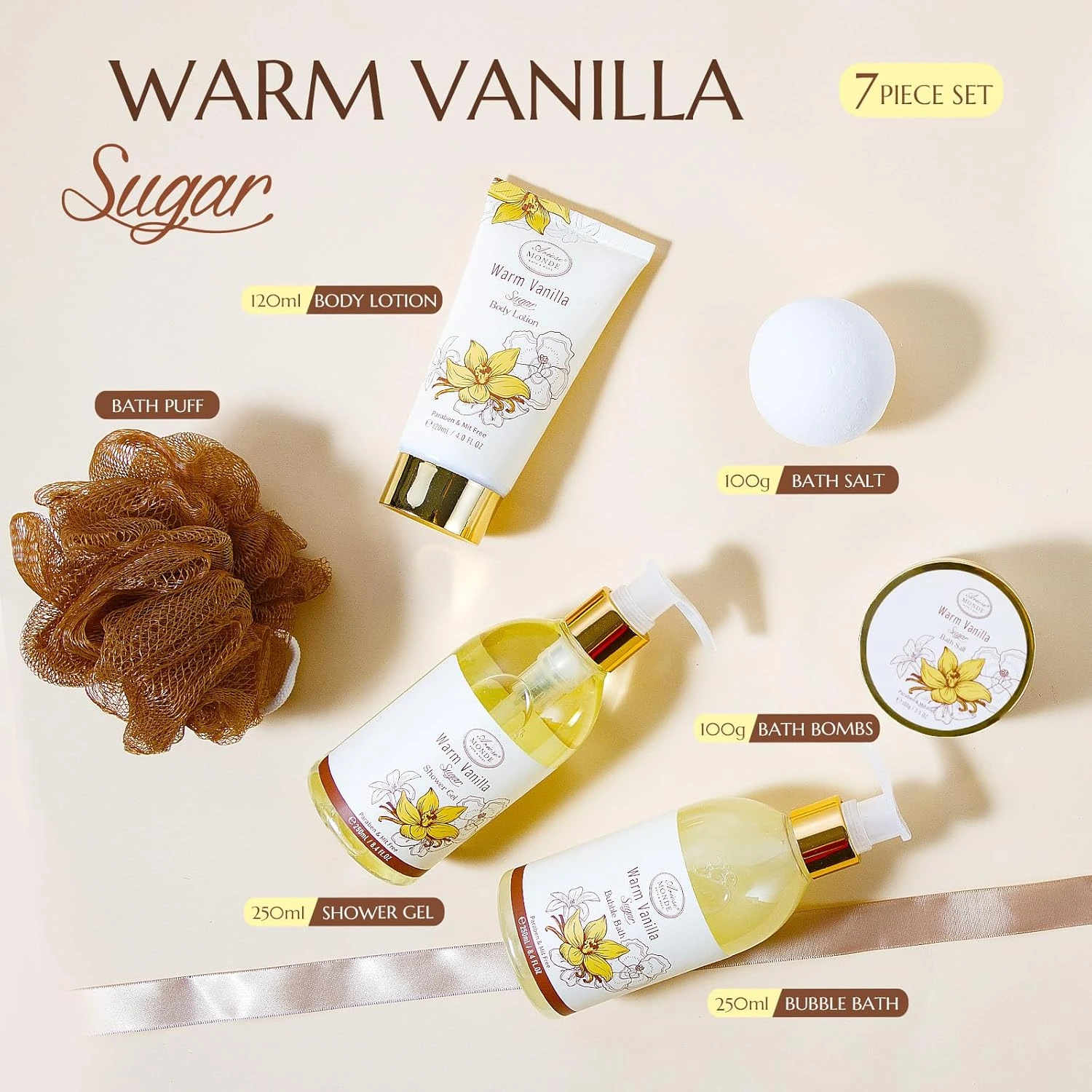 Pamper yourself with the Arioso Monde Warm Vanilla Sugar Bath Gift Set. Infused with the comforting scent of vanilla sugar, this luxurious collection is crafted to cleanse, hydrate, and rejuvenate your skin, while offering a relaxing spa-like experience at home. Benefits: