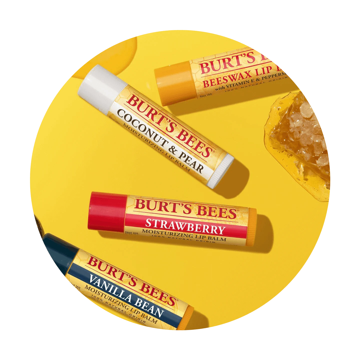 Suitable for All Skin TypesFormulated with 100% natural-origin ingredients and free from parabens, phthalates, petrolatum, and SLS, this balm is designed to be gentle and nourishing for all skin types, even sensitive lips Treat your lips to nature’s finest with Burt’s Bees Lip Balm 4‑Pack. Each compact tube features responsibly sourced beeswax, fruit extracts, natural butters, and oils that glide on smoothly to deliver deep, long-lasting hydration, leaving lips soft, smooth, and revitalized. The quartet of delicious flavors—classic Beeswax, sweet Strawberry, tropical Coconut & Pear, and indulgent Vanilla Bean—makes lip care a delightful daily ritual . Benefits
