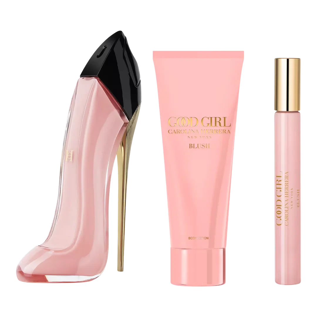 Step into sophistication with the Carolina Herrera Good Girl Blush Gift Set. A captivating fragrance with floral and powdery notes that combine innocence with bold femininity. The set delivers an elegant fragrance experience, complemented by a luxurious body lotion and a travel-size perfume for confidence anytime, anywhere. Benefits: