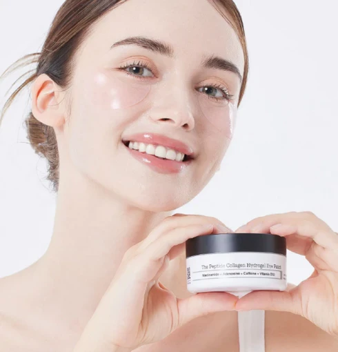 A revitalizing hydrogel eye patch enriched with peptides, collagen, niacinamide, caffeine, and vitamin B12 to deliver firming, brightening, and de-puffing effects. It nourishes the delicate under-eye area for a refreshed, youthful look. Benefits