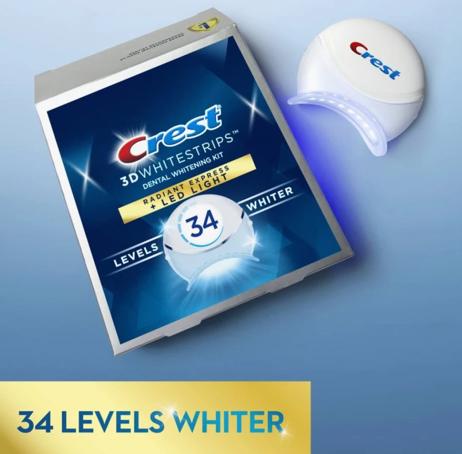 Unlock your most radiant smile with the Crest 3D Whitestrips Radiant Express + LED Light kit — the most advanced at-home whitening system from America’s #1 dentist-recommended whitening brand. Designed to deliver 34 levels of whitening, this powerful duo combines professional-grade whitening strips with an LED light for maximum brightness and long-lasting results in just days. Key Benefits: