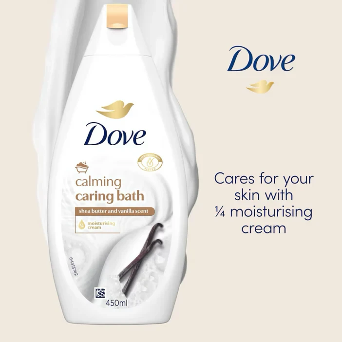 Indulge in a moment of calm with Dove Calming Caring Bath, enriched with moisturising cream to leave your skin soft, smooth, and beautifully nourished. Its gentle, creamy formula cleanses while deeply hydrating, giving your skin a silky feel and a soothing fragrance that relaxes your senses. Key Benefits:
