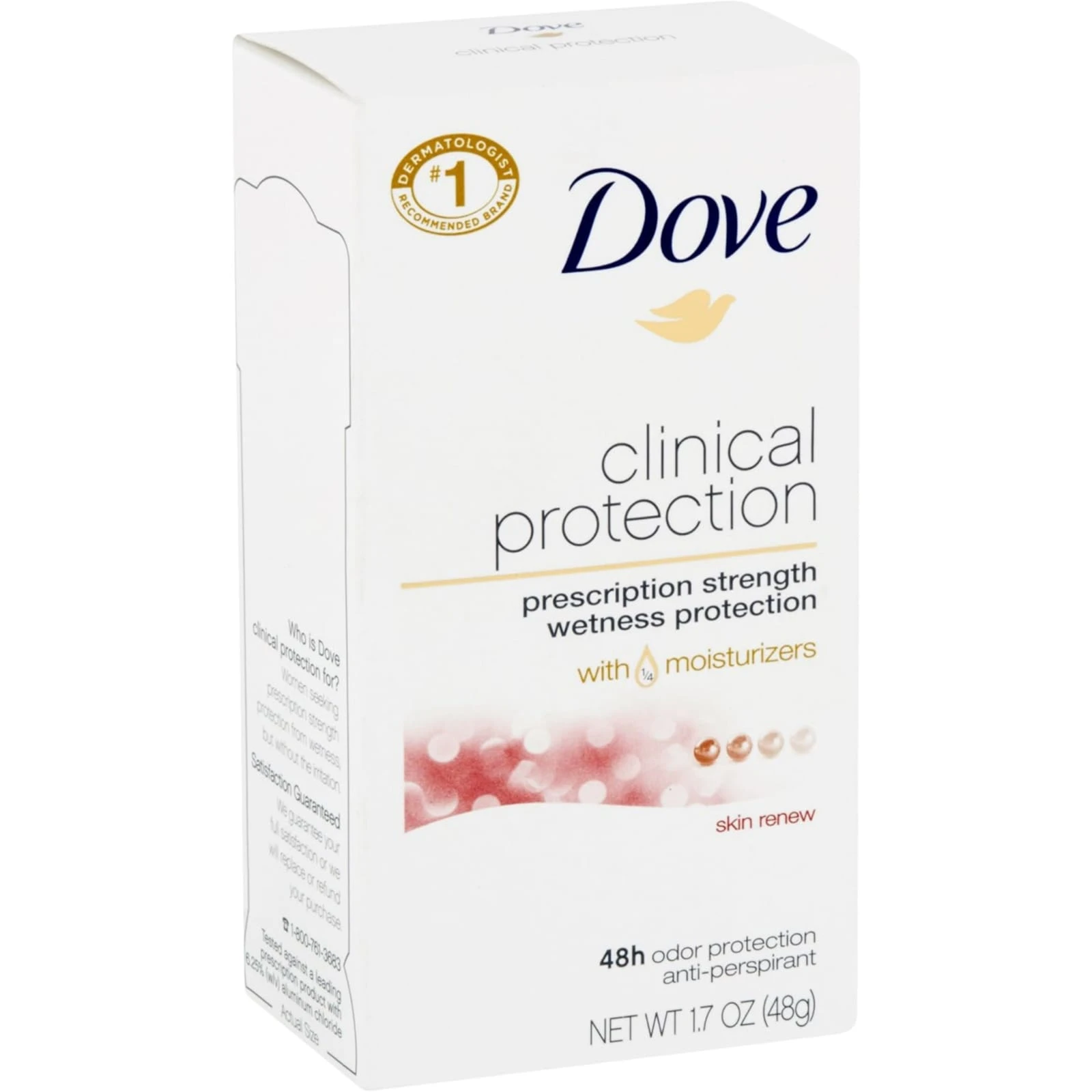 Experience prescription-strength wetness protection with the care of Dove. Clinical Protection Skin Renew combines powerful odor and sweat defense with moisturizing ingredients that help keep underarm skin soft, smooth, and renewed. Enjoy long-lasting freshness and confidence all day. Benefits 48-hour odor and sweat protection. Prescription strength wetness control for heavy perspiration. Contains ¼ moisturizers to reduce irritation caused by shaving. Skin renewal support – helps improve skin tone and texture underarms. Gentle on skin while delivering powerful antiperspirant performance. Suitable For All skin types, including sensitive skin. Dermatologist-tested, gentle formula with moisturizers. Suitable Area of Use Specifically formulated for underarms. How to Use Apply to clean, dry underarms. For best results, apply at night before bed; the formula works overnight to form a protective layer for the next day. Can also be applied in the morning if preferred. Warnings & Precautions For external use only. Do not apply to broken or irritated skin. Discontinue use if rash or irritation occurs. Keep out of reach of children. If swallowed, seek medical help right away |