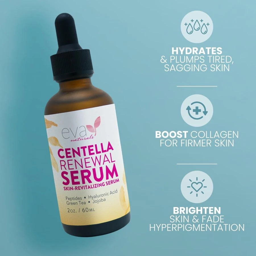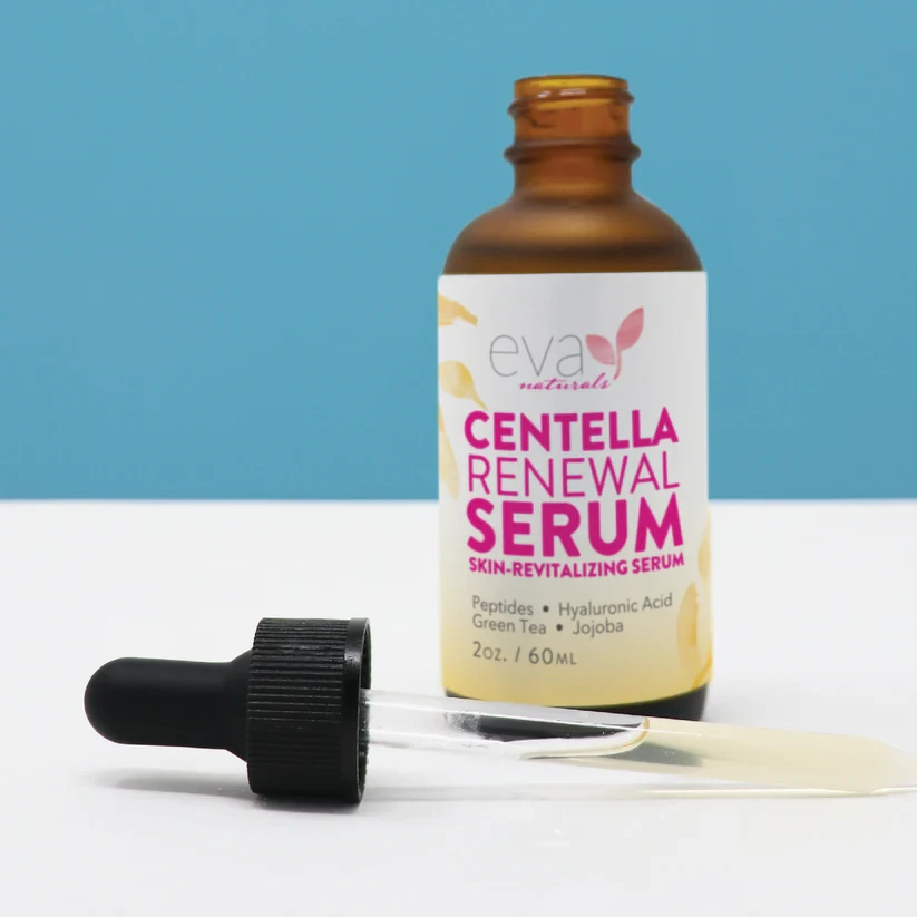 Eva Naturals Centella Renewal Serum is a skin-revitalizing formula enriched with powerful botanicals and peptides to restore, hydrate, and protect the skin. Featuring Centella Asiatica, hyaluronic acid, green tea, and jojoba oil, this serum soothes irritation, strengthens the skin barrier, and promotes a smooth, radiant complexion. Its lightweight formula absorbs quickly, delivering essential nutrients that help reduce signs of fatigue and environmental damage. Key Benefits: