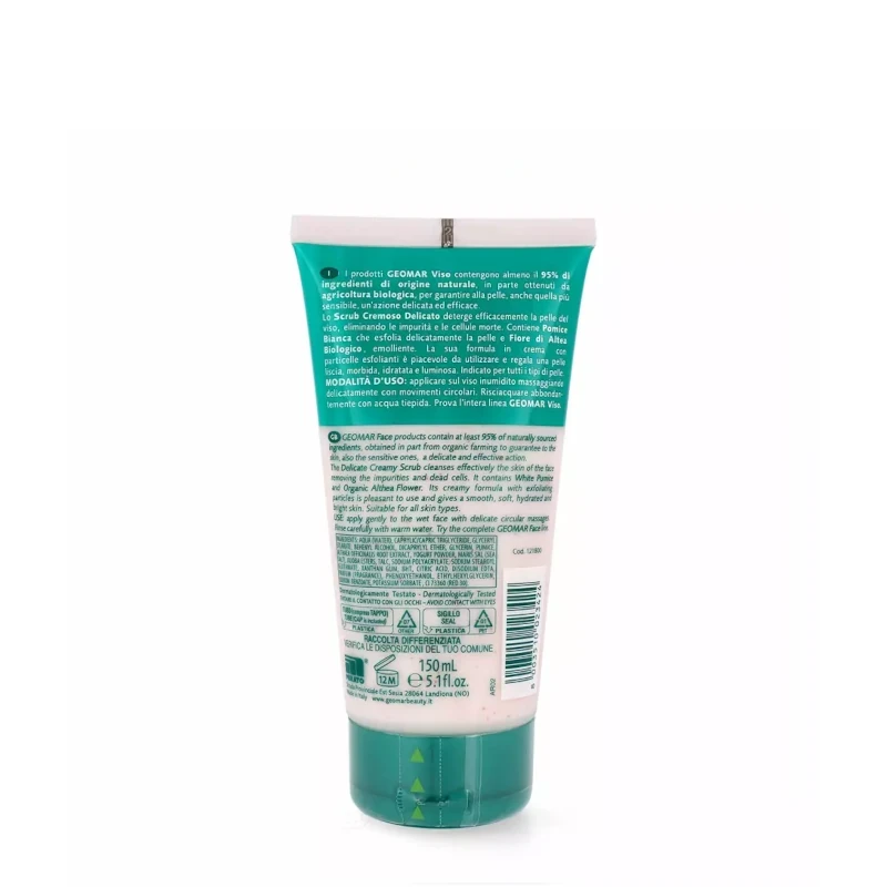 Geomar Viso Scrub Cremoso Delicato is a gentle creamy facial scrub designed to exfoliate, cleanse, and refresh the skin. Its delicate formula removes dead skin cells and impurities without irritation, leaving the skin soft, smooth, and radiant. Features: