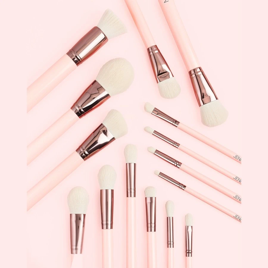 Elevate your makeup routine with the Jenny Patinkin About Face Brush Set. professional artistry into your hands. Each brush delivers silky-soft precision with ultra-dense bristles for exceptional pigment pickup and seamless blending. Lightweight, hygienic, vegan, and endlessly versatile—this is the ultimate tool kit for anyone serious about beauty. Comes in a chic vegan leather pouch for stylish travel or organized storage. Designed for everyday creativity and professional application alike, this set is perfect for makeup lovers who want quality, sustainability, and total coverage in one elegant package. Benefits: Each brush head holds 2.5× the bristles of typical brushes, using high-tech recycled plastic fibers that are finer than human hair for ultra-soft, flawless application. Sustainable materials: Handles crafted from recycled aluminum and upcycled wood; bristles made from recycled plastic. luxury with environmental responsibility. Versatility: These vegan brushes perform beautifully with cream, liquid, and powder formulas Set Contents (15 Brushes)