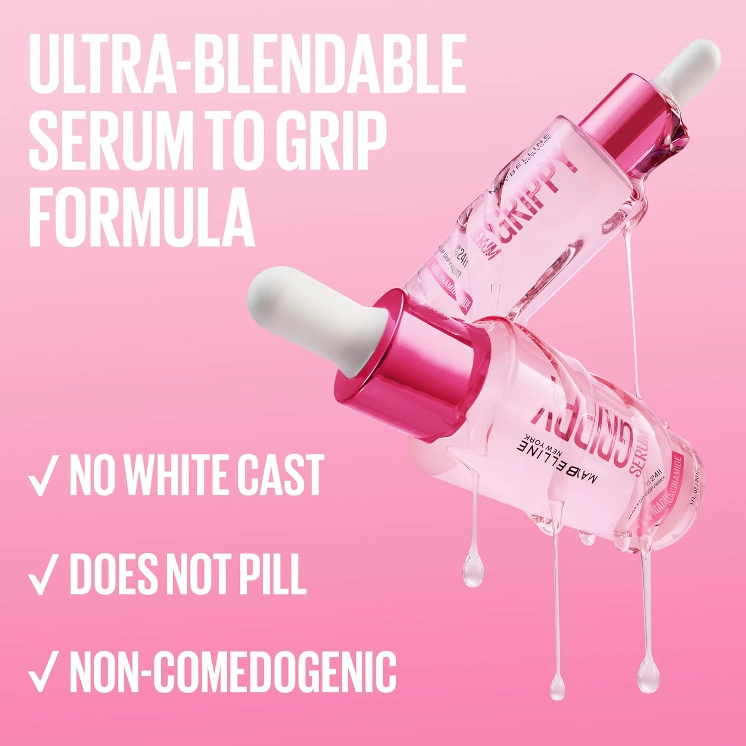 Meet the Maybelline Grippy Serum Primer, the perfect hybrid between skincare and makeup. Enriched with 2% Niacinamide, this primer-serum hydrates, smooths, and preps the skin while gripping makeup for up to 24 hours. It minimizes shine, evens out skin tone, and ensures a flawless, long-lasting finish. Benefits