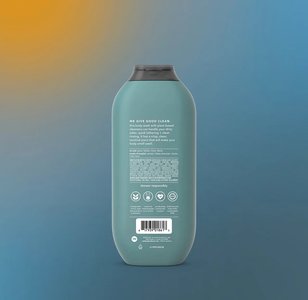 Refresh your daily shower routine with Method Men Sea + Surf Body Wash. Its invigorating marine-inspired fragrance captures the crisp, clean essence of sea breeze and surf, leaving you energized and fresh all day long. The naturally derived formula lathers richly to wash away dirt and impurities without over-drying your skin. Benefits Cleanses effectively without stripping moisture. Infused with a fresh, ocean-inspired fragrance. Leaves skin feeling soft, refreshed, and revitalized. Made with naturally derived ingredients and biodegradable formula. Free from parabens, phthalates, and harsh chemicals. Cruelty-free and environmentally friendly packaging. Suitable for All Skin Types Yes, this body wash is formulated to be gentle and suitable for all skin types, including normal, dry, and sensitive skin. Suitable Areas of Use Intended for the entire body (not for face, eyes, or intimate areas). How to Use Squeeze a small amount onto a loofah, sponge, or directly into your hands. Lather onto wet skin in circular motions. Rinse thoroughly with warm water. Can be used daily as part of your shower routine. Warnings / Precautions For external use only. Avoid contact with eyes. If contact occurs, rinse thoroughly with water. Keep out of reach of children. Discontinue use if irritation or rash occurs. |