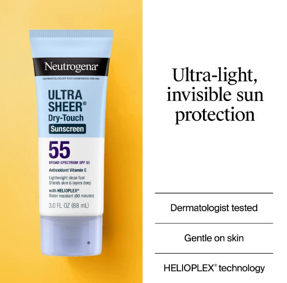 Suitable for: All skin types, especially oily or combination. A high-performance sunscreen with Dry-Touch technology that absorbs quickly and leaves a non-shiny, matte finish with SPF 55 protection. Benefits: Broad-spectrum sun protection, oil control, fast absorption, and non-comedogenic. Suitable for: Face, neck, and exposed areas. How to Use: Apply before sun exposure. Reapply every 2 hours during outdoor activity. Warnings: For external use only. Keep away from eyes. Stop use if irritation develops. |