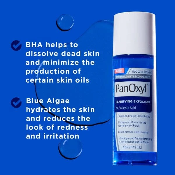 PanOxyl Clarifying Exfoliant is a powerful yet gentle leave-on toner that combines 2% Salicylic Acid (BHA) with soothing ingredients to fight breakouts, unclog pores, and improve skin texture. Designed especially for acne-prone and oily skin, it penetrates deep into the pores to dissolve excess oil and dead skin cells while calming inflammation. This non-comedogenic, alcohol-free exfoliant helps reveal clearer, smoother skin with consistent use. KEY BENEFITS: