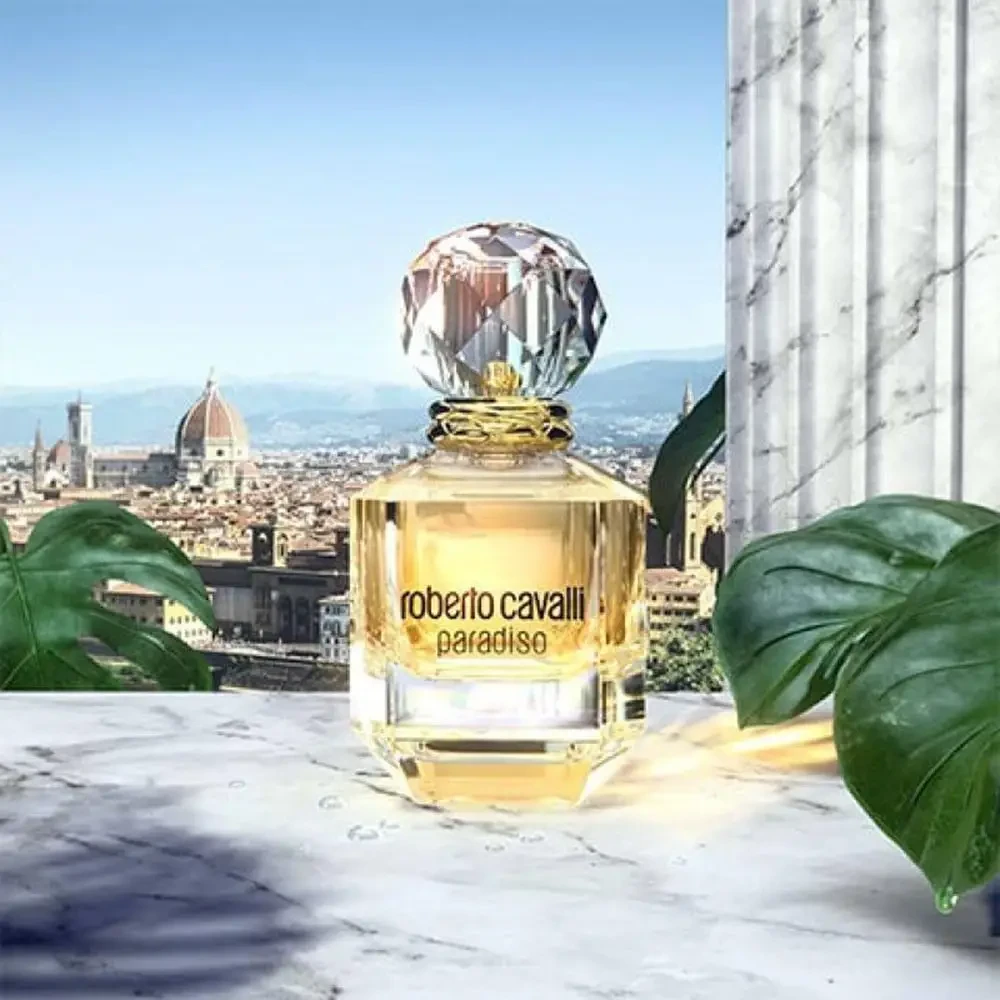 Step into your own personal paradise with Roberto Cavalli Paradiso, a radiant fragrance that celebrates the joy of living. Inspired by the golden hour on the Italian coast, this fragrance is an ode to sunshine, freedom, and feminine sensuality. The jewel-like bottle reflects light beautifully, symbolizing luxury and escape. Fragrance Notes