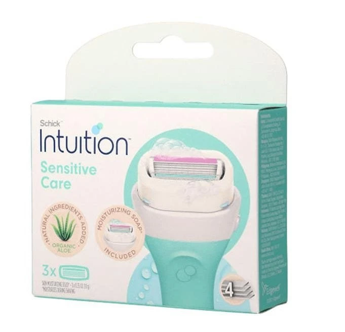 “Discover effortless shaving with Schick Intuition Sensitive Care. Infused with natural aloe, this razor lathers and shaves in one step, leaving your skin smooth, fresh, and deeply hydrated — no need for shaving cream.” Benefits