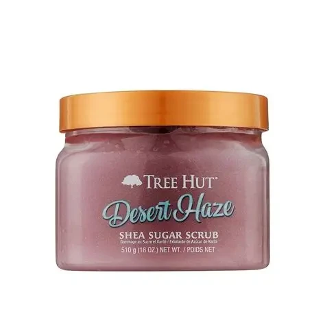 Exfoliate • Hydrate • Smooth Skin Tree Hut Desert Haze Shea Sugar Scrub is a luxurious body scrub designed to gently exfoliate and deeply nourish your skin. Infused with sugar crystals and Shea Butter, it removes dead skin cells, smooths rough patches, and replenishes moisture, leaving your skin soft, radiant, and silky. The rich, aromatic formula transforms your shower or bath into a spa-like experience. Ideal for weekly use or whenever your skin needs extra smoothing and hydration. Key Features