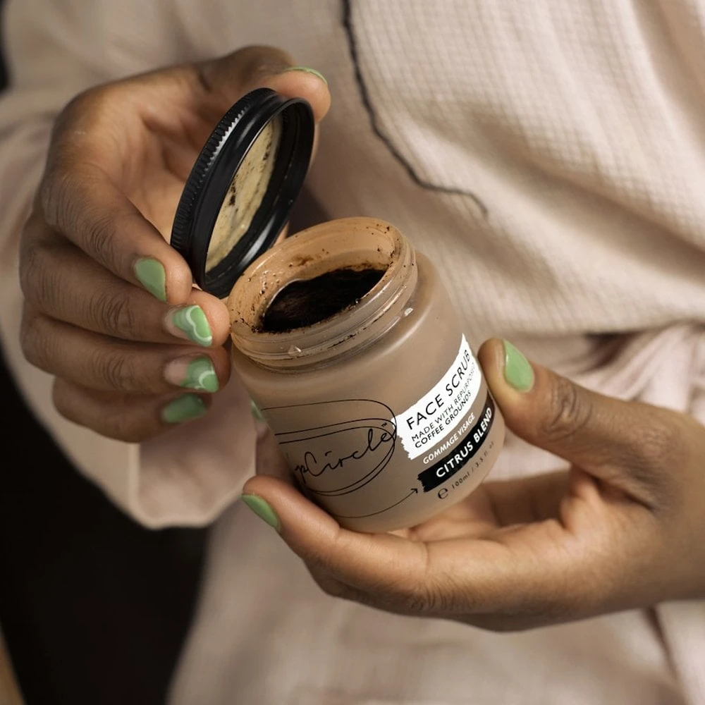 A clean beauty face scrub made with upcycled botanical grains that gently polish skin and reduce waste. Benefits: