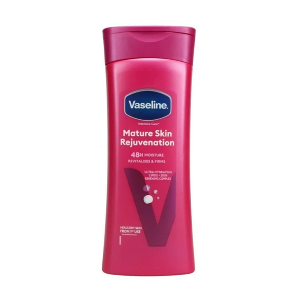 Suitable for: All skin types, especially mature, thinning, or dry skin. Vaseline Intensive Care Mature Skin Rejuvenation Lotion is specially formulated to deeply moisturize and revitalize aging skin. Enriched with Vitamin B3 and micro-droplets of Vaseline Jelly, this fast-absorbing formula helps improve elasticity, restore firmness, and provide lasting hydration. It supports the skin’s natural renewal process, leaving it noticeably smoother, more resilient, and radiant. Benefits: Intensely moisturizes and firms mature or thinning skin Improves skin elasticity and texture Enriched with Vitamin B3 for rejuvenation and nourishment Strengthens the skin’s barrier and locks in moisture Lightweight, non-greasy texture for daily use Areas of Use: Formulated for full body use. arms, legs, hands, feet, and torso. Not intended for the face or eye area. How to Use: Apply daily to clean, dry skin. Massage in gently until fully absorbed. Use regularly for visible results in skin texture and firmness. Warnings: For external use only. Avoid contact with eyes. In case of irritation, discontinue use. Keep out of reach of children. Store in a cool, dry place. |