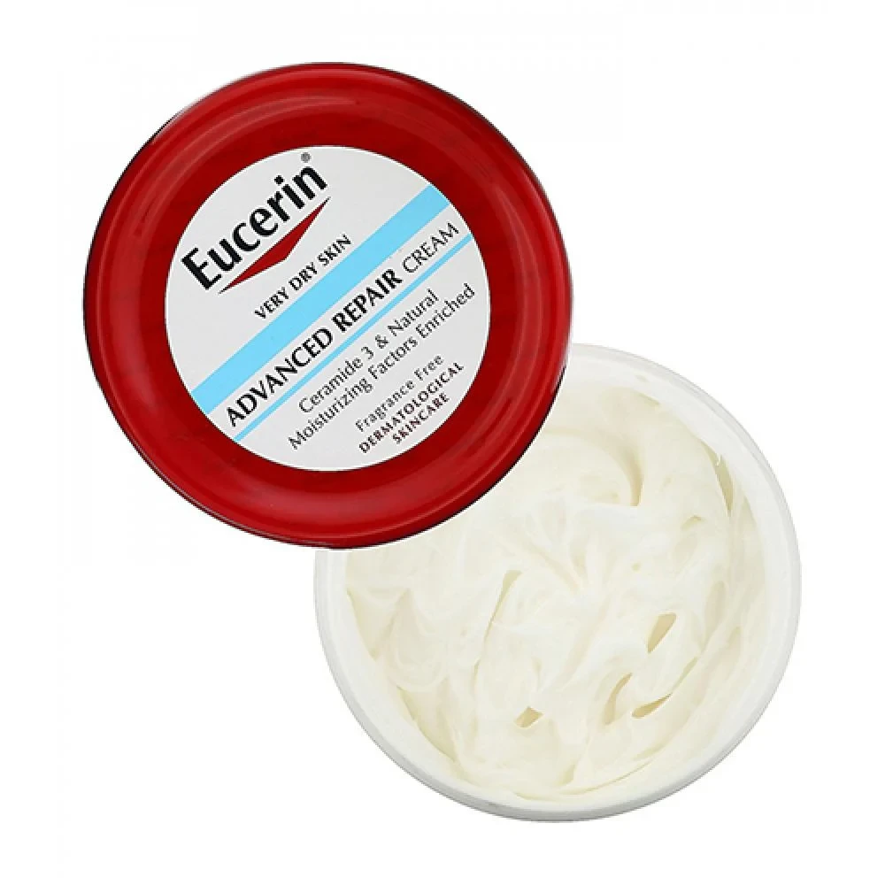 Suitable for: Eucerin Advanced Repair Cream is suitable for all skin types, including very dry and sensitive skin. It is dermatologist-recommended and non-comedogenic, making it ideal for individuals seeking to improve skin hydration and texture. The fragrance-free formula ensures minimal risk of irritation, even for those with sensitive skin. Eucerin Advanced Repair Cream is a rich, non-greasy moisturizer designed to provide immediate and long-lasting hydration for very dry skin. Enriched with Ceramide-3 and Natural Moisturizing Factors, it helps strengthen the skin's moisture barrier and replenish moisture to prevent dryness from recurring. The cream absorbs quickly without leaving a sticky residue, making it suitable for daily use. Benefits: Deep Hydration: Provides 48-hour moisture, leaving skin feeling soft and smooth. Strengthens Skin Barrier: Contains Ceramide-3 to help restore and maintain the skin's natural protective barrier. Gentle Formula: Fragrance-free, dye-free, and paraben-free, reducing the risk of irritation. Non-Comedogenic: Won't clog pores, making it suitable for use on the face and body. Fast Absorbing: Absorbs quickly without leaving a greasy residue. Suitable Areas: This cream is designed for use on the body. It is gentle enough for use on the face, but it's recommended to perform a patch test first, especially for those with sensitive facial skin. Avoid applying near the eyes or on broken skin. How to Use: Apply generously to clean, dry skin. Massage gently until fully absorbed. Use daily, preferably after showering, to lock in moisture. For best results, pair with Eucerin Advanced Repair Cleanser. Usage Warnings: For external use only. Avoid contact with eyes; in case of eye contact, rinse thoroughly with water. Keep out of reach of children. Discontinue use if irritation occurs and consult a healthcare professional. Sunburn Alert: This product contains Alpha Hydroxy Acid (AHA), which may increase your skin's sensitivity to the sun and the possibility of sunburn. Use a sunscreen, wear protective clothing, and limit sun exposure while using this product and for a week afterward. |