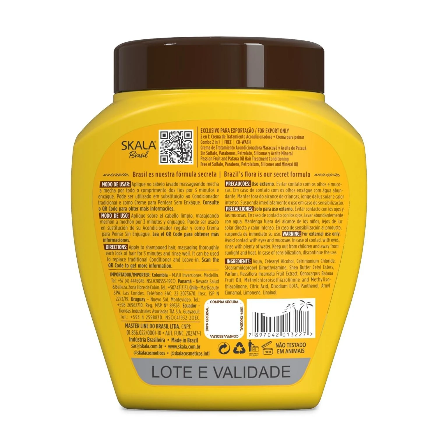 Bring the vitality of the Amazon to your hair care routine. Infused with the nourishing power of Maracujá (Passion Fruit) and Patauá Oil, this treatment delivers strength, shine, and natural softness. It’s a versatile 2-in-1 formula that works both as a treatment mask and a leave-in conditioner, giving your hair resilience and vitality. Key Benefits Promotes hair growth and strength. Nourishes and hydrates the strands deeply. Helps reduce breakage and damage. Improves shine, softness, and manageability. Restores vitality for healthier-looking hair. Suitable for Any Hair Type Formulated for all hair types, especially weak, brittle, or slow-growing hair. Best for Which Part Designed for hair only (scalp and strands). Not intended for skin, eyes, or body use. How to Use As a Conditioner/Mask: Apply to clean, damp hair after shampoo. Leave on for 3 minutes for quick conditioning or up to 15 minutes for deeper treatment. Rinse thoroughly. As a Leave-In Cream: Apply a small amount to damp or dry hair. Do not rinse. Style as usual. Warnings For external use only. Avoid contact with eyes; rinse immediately if contact occurs. Keep out of reach of children. Discontinue use if irritation occurs. Store in a cool, dry place, away from direct sunlight. |